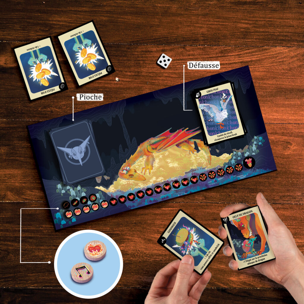 L’univers coloré du jeu participe à l’atmosphère enjouée des parties, et les nombreuses cartes et illustrations encrent les joueurs dans le jeu par leur dynamisme.